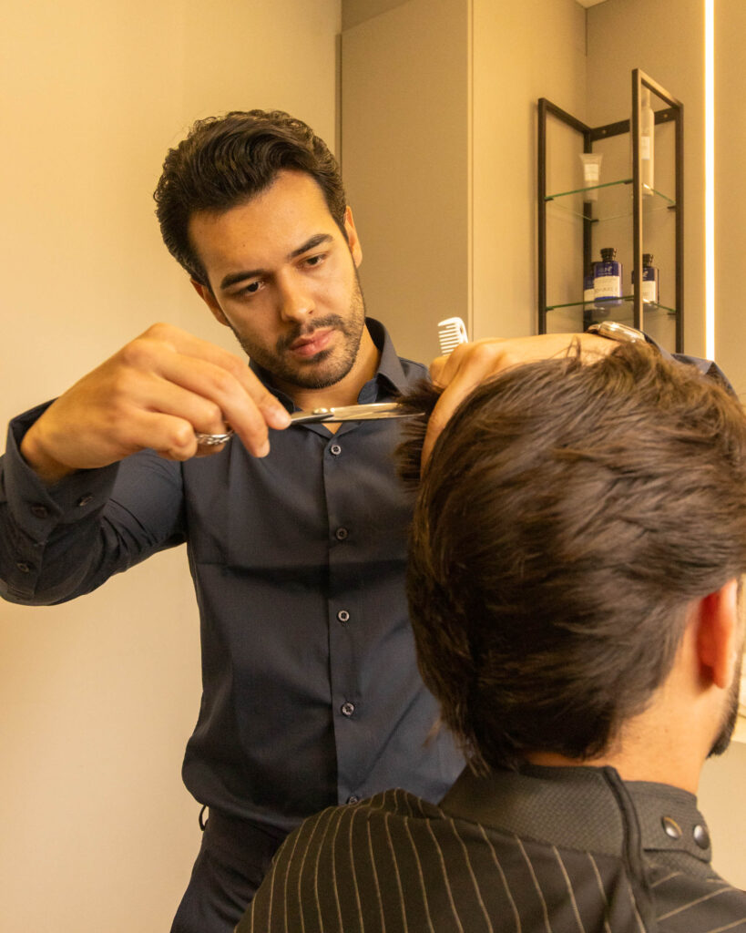 Experimente um corte de cabelo personalizado, pensado para valorizar suas características e estilo pessoal.